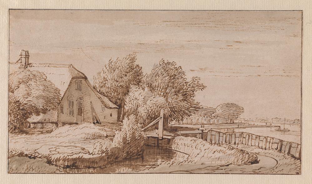 J. Goll van Franckenstein (1722-1785); J. Goll van Franckenstein (1756-1821); P.H. Goll van Franckenstein (1787-1832); veiling Goll van Franckenstein 1833, p. 70, nr. 17: 'De opgang van een Boerenhoeve. Geestig met de rietpen, door J. Esselens' (f 52,-, Hulswit); Veiling van Cranenburg 1858, p. 6, nr. 49: 'J. Esselens. Cabane rustique ombragé d'arbres, à la plume et au bistre' (f 69,-, Lamme) ; Legaat C.J. Fodor 1860