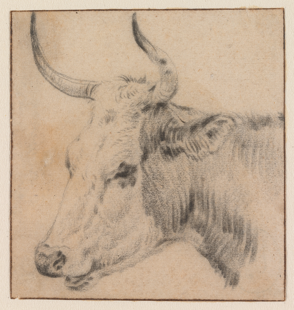 Veiling Danckerts 1849, p. 8, Kunstboek D, nr. 98: 'Een Ossekop, met zwart krijt, door P. Potter' (f 61,-, aan Brondgeest): Collectie C.J. Fodor, legaat 1860