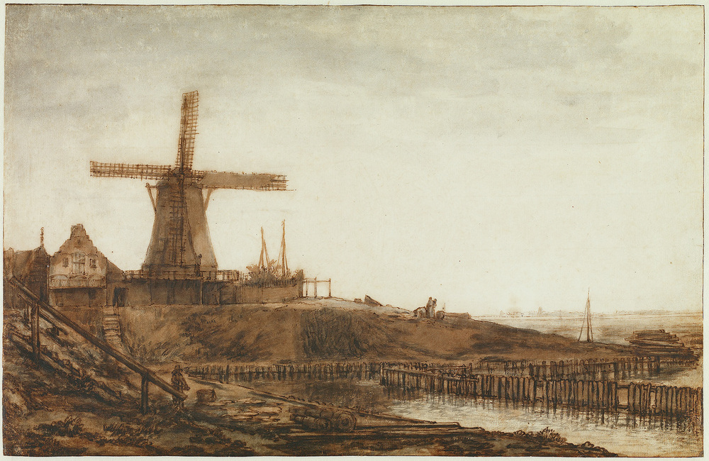 Veiling Ploos van Amstel 1800, p. 36, nr. 38: 'Gezicht buiten de Haarlemmer Poort te Amsterdam , by het Blaauwe Hoofd, gestoffeerd met Beeldjes en verder bywerk; krachtig met de Pen en Roet getekend, door Rembrandt' (f 70,-, Boddens); Veiling De Haas 1824, p. 17, nr. 1: 'Deze beroemde Tekening, bekend onder den naam van den Molen aan het Blaauwe Hoofd, is voorzeker eene der voortreffelijkste, welke van den hand van Rembrandt, den liefhebberen bekend is. De uitdrukking, kracht en behandeling, staan gelijk aan zijne beste schilderstukken, terwijl het licht en bruin de natuur evenaart' (f 520,-, Buiking); Veiling Verstolk van Soelen 1847, p. 35, nr. 209: 'Du Même (= Rembrandt van Rhyn). Ce célèbre dessin représente un moulin, sur une partie, dit: 'le blaauwe hooft' des ci-devant remparts d'Amsterdam ; tout près se trouvent quelques maisons, et l'avant plan descend jusqu'au bord de l'Y, garni de pilotage. Cette admirable production, d'une intelligence rare de clair-obscur, est vigoureusement traité à la plume et lavée au bistre' (f 1488,-, Brondgeest); Legaat C.J. Fodor 1860
