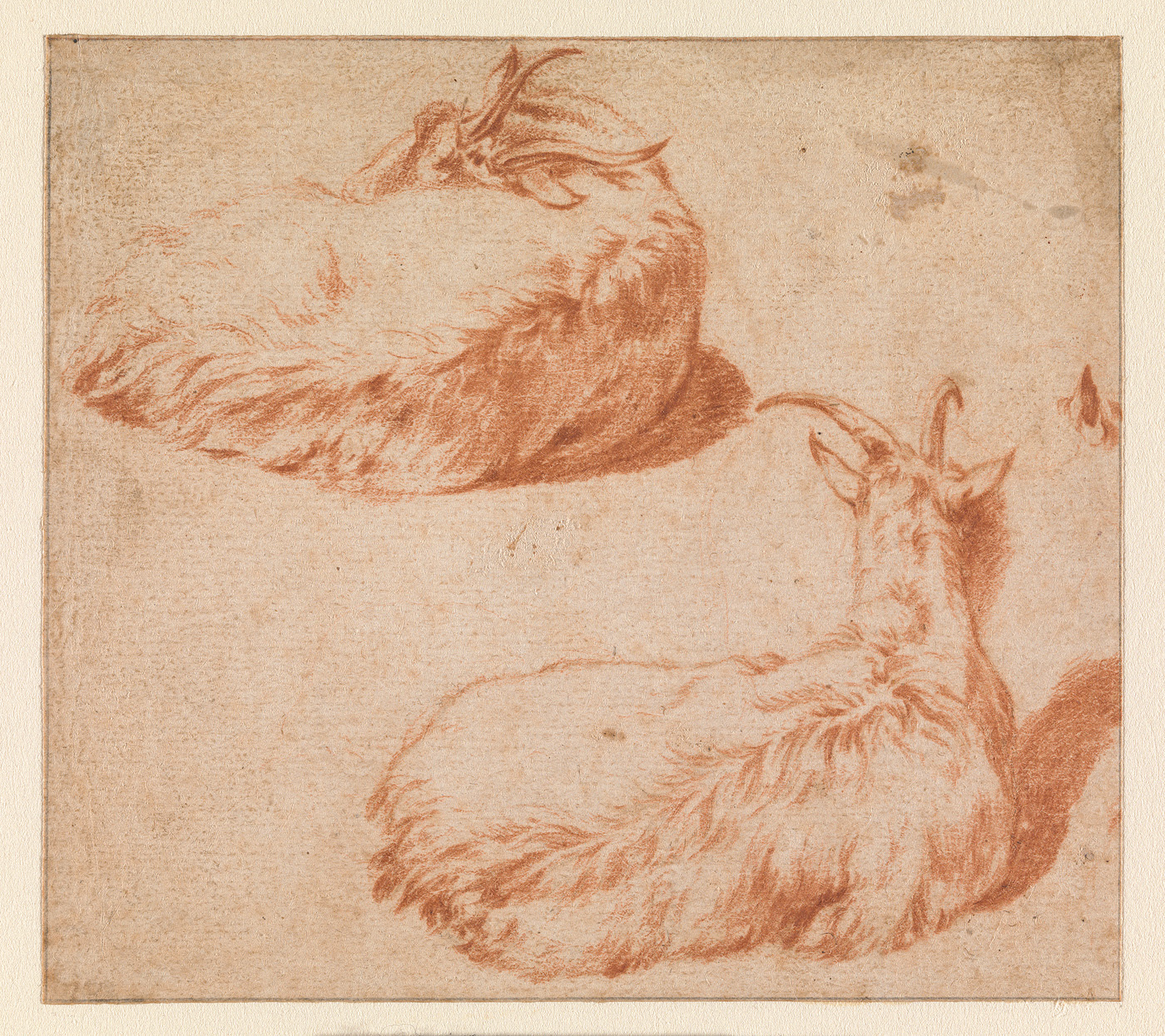 - Twee studies van een liggende geit, op de rug gezien.(verso) Staande geit (contre-épreuve), 1651 - 1672