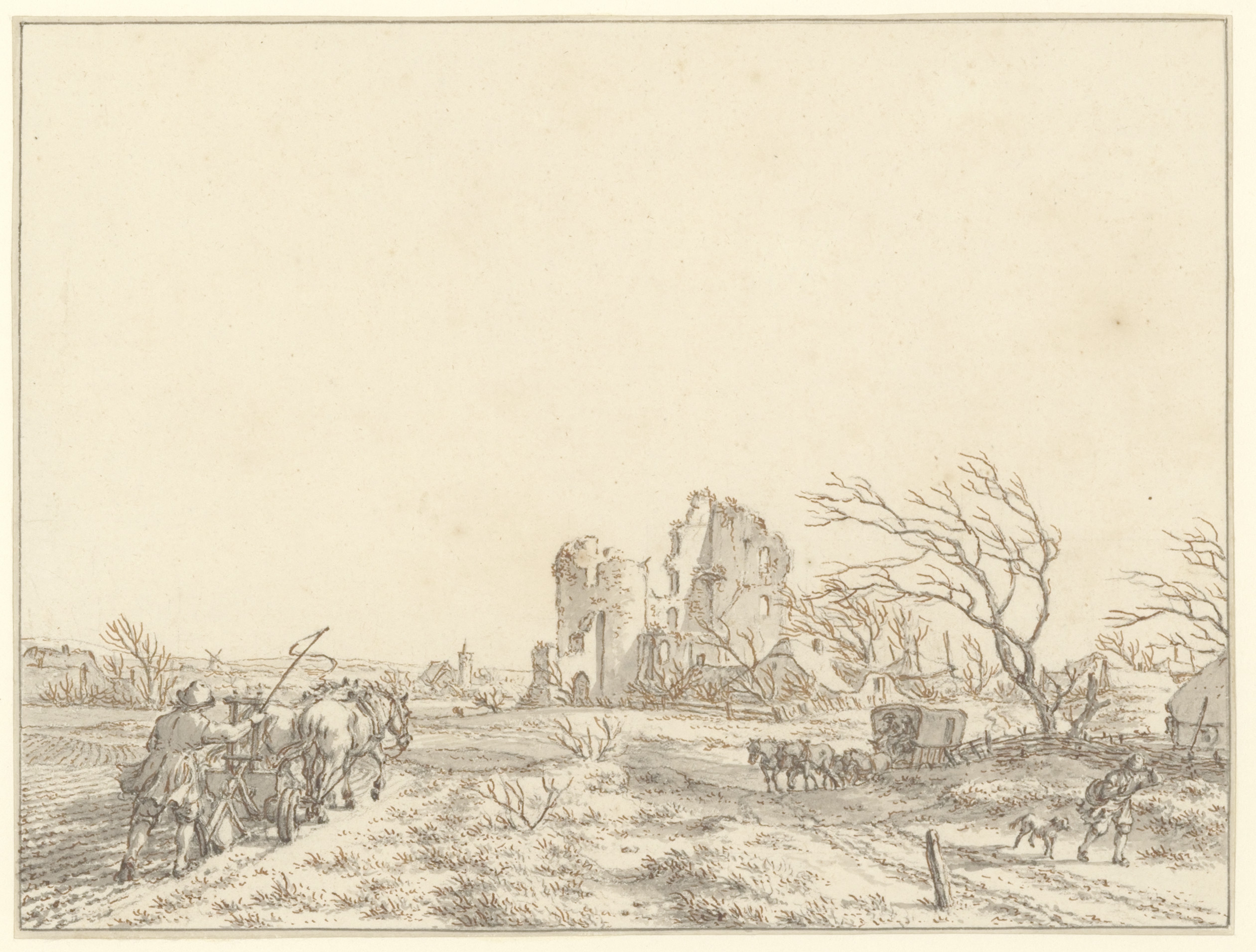 - Maart - Een ploegende boer in een landschap met een ruïne, bij stormachtig weer, 1796 - 1799