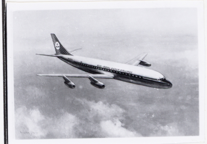 - Prentbriefkaart met KLM's Douglas DC-8 Intercontinental jet (naar Victor Trip)