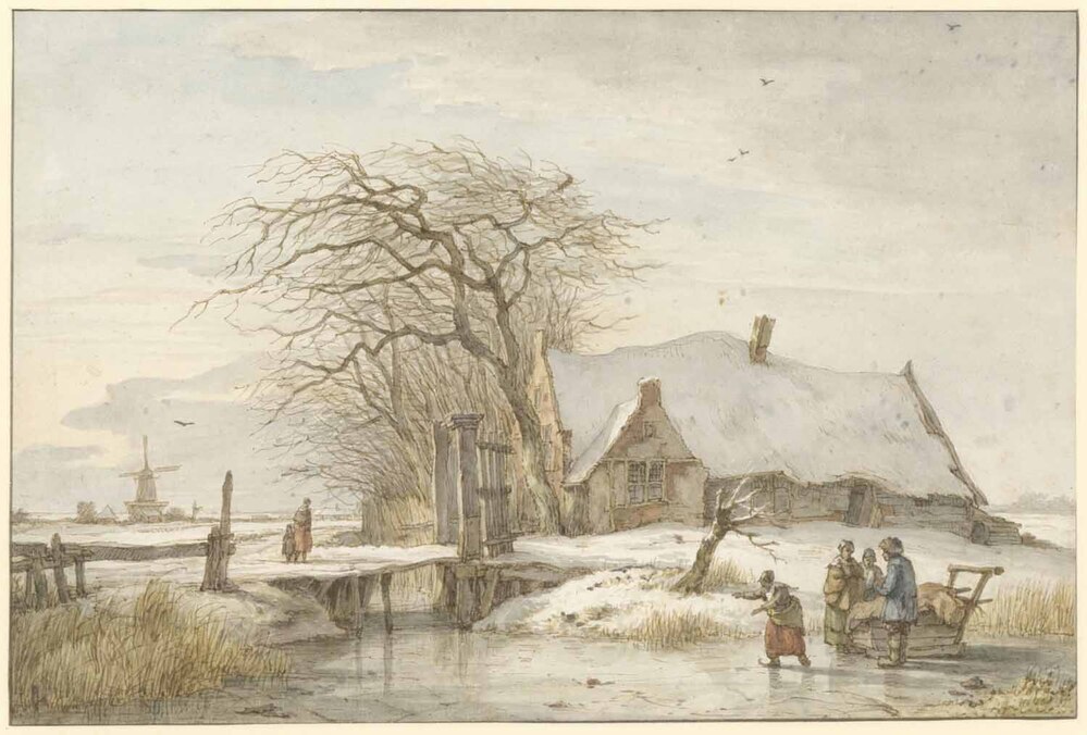 - Een boerenwoning aan een sloot bij winter, 1786 - 1822