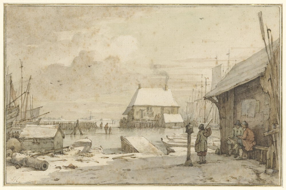 - De buitenkant bij de nieuwebrug te Amsterdam bij winter, 1786 - 1822