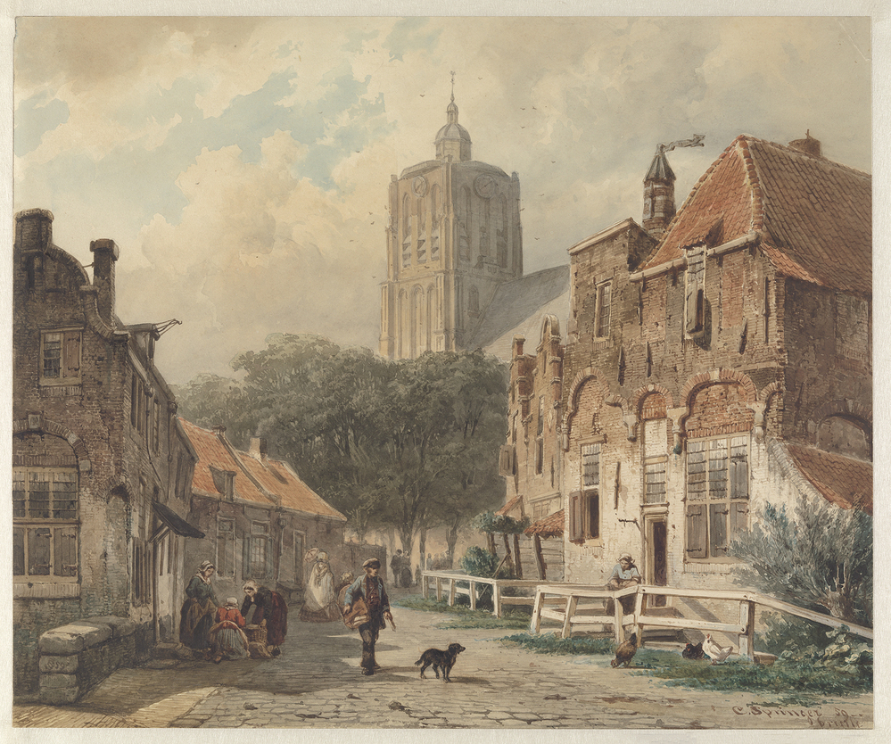De stadsgezichten van Cornelis Springer werden zeer gewaardeerd door verzamelaars. Kunsteverzamelaar C.J. Fodor kocht drie schilderijen en drie tekeningen van de kunstenaar. Op een van de tekeningen is dezelfde toren te zien als op het schilderij 'Gezicht op de Wellerondom in Den Briel'. De toren is alleen vanuit een andere hoek weergegeven waardoor het plein met de pomp, 'rondom de wel', niet is afgebeeld. ( Gusta Reichwein)