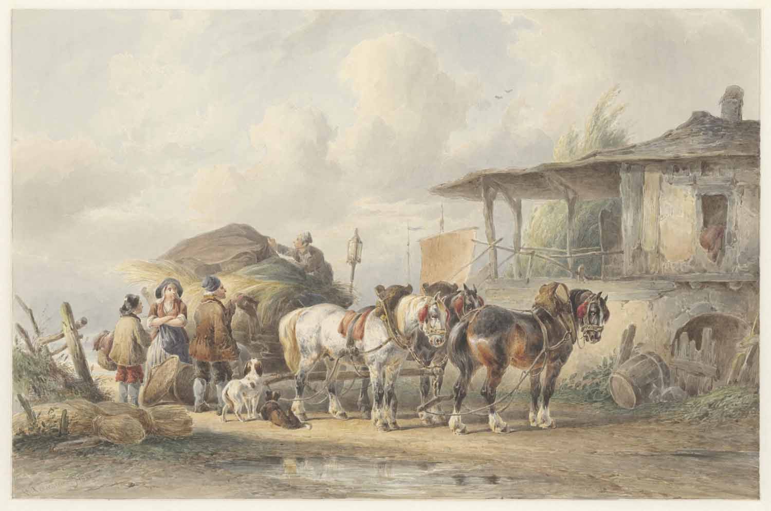 - Drie paarden voor eenen vrachtwagen, 1842
