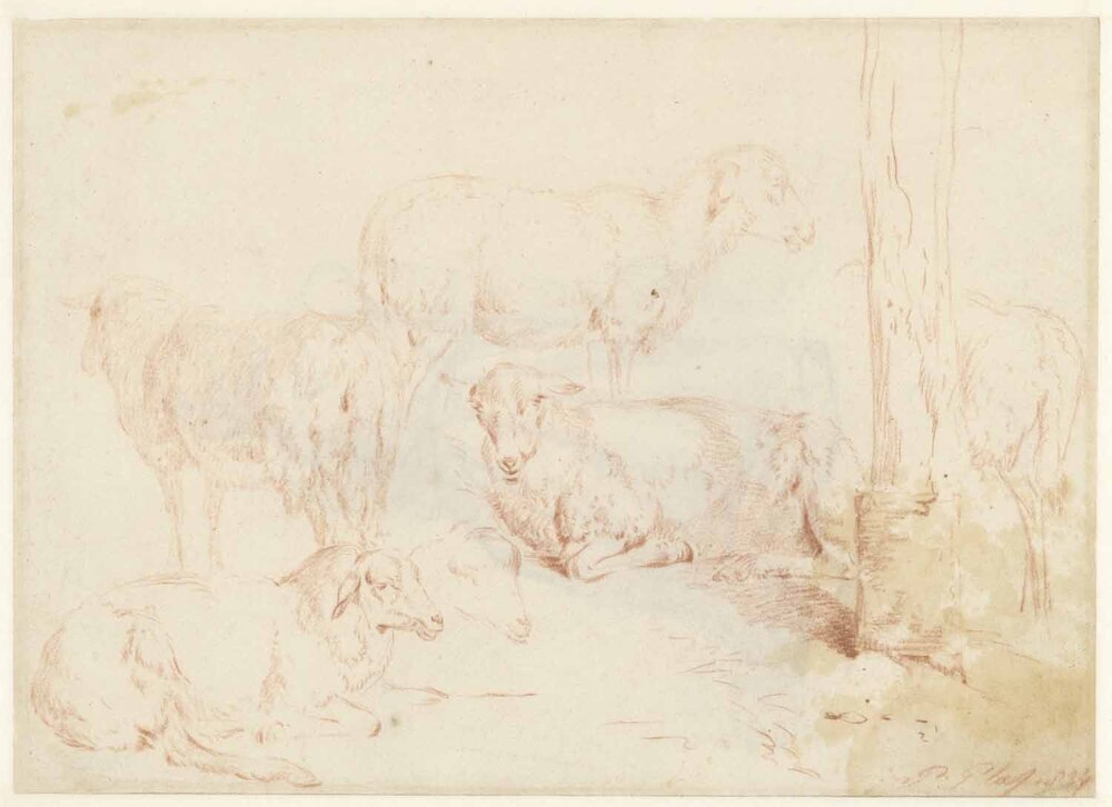 - Schapen. Studie van een meisje (verso), 1837