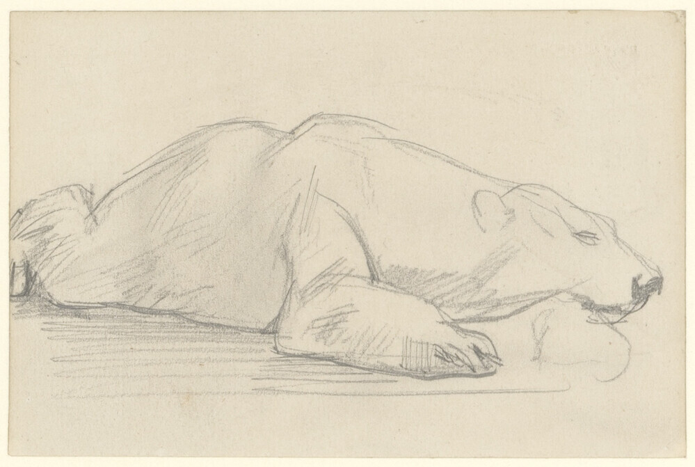 - Studie van liggende ijsbeer (recto). Studie van aap (verso), 1850 - 1899