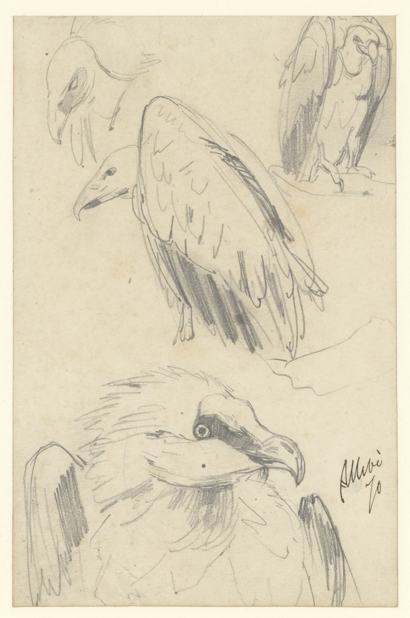 - Studie van gieren (in het midden een vale gier en mid.o. een lammergier), 1870
