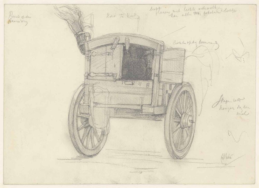 - De kar van den straatveger. Een zittende leeuw (verso), 1850 - 1899