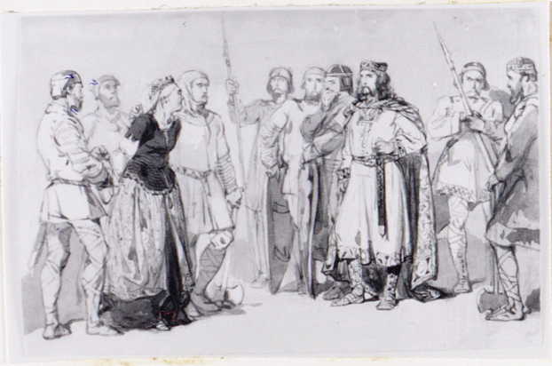 - Brunhilde als gevangene gebracht voor Clotaire die omgeven is door krijgslieden, 1863