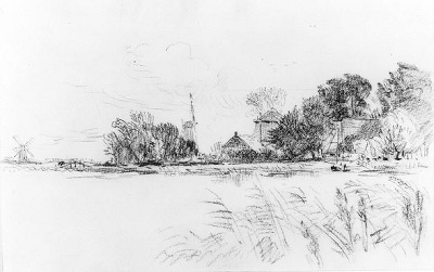 - Landschap met water, boerderijen en molens (bij Haarlem of de Zaan), 1840 - 1881