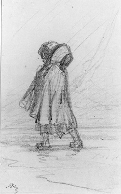 - Naar linkslopend meisje met cape te Amsterdam, 1840 - 1881