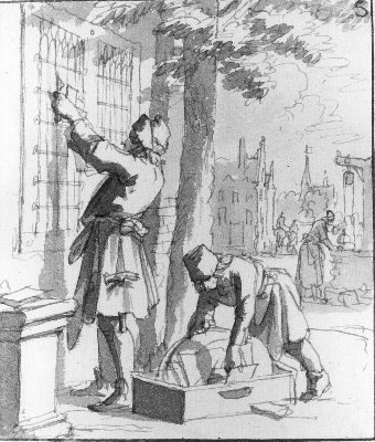 Voorstudie voor prent nr. 5 uit Het Menselyk Bedryf" door Jan Luyken- Trefwoorden