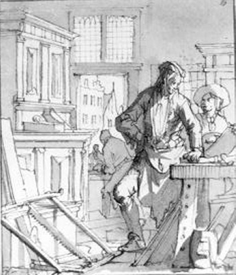 Voorstudie voor prent nr. 7 uit "Het Menselyk Bedryf" door Jan Luyken- Trefwoorden