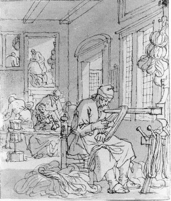 Voorstudie voor prent nr. 14 uit "Het menselyk bedryf" door Jan Luyken- Trefwoorden