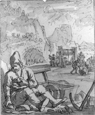 Voorstudie voor prent nr. 75 uit "Het menselyk bedryf" door Jan Luyken- Trefwoorden