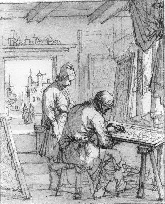 Voorstudie voor prent nr. 83 uit "Het menselyk bedryf " door Jan Luyken- Trefwoorden