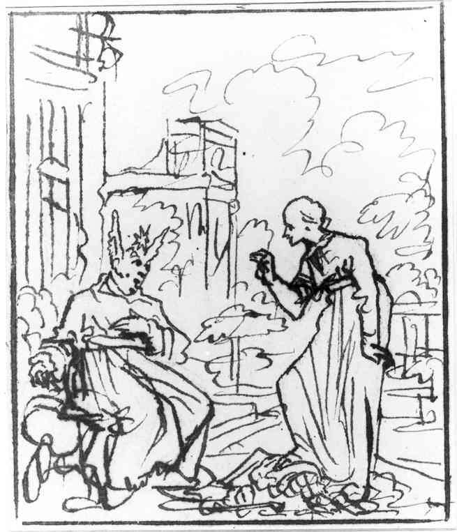 Voorstudie voor prent 3 uit "Jezus en de ziel" door Jan Luyken- Trefwoorden