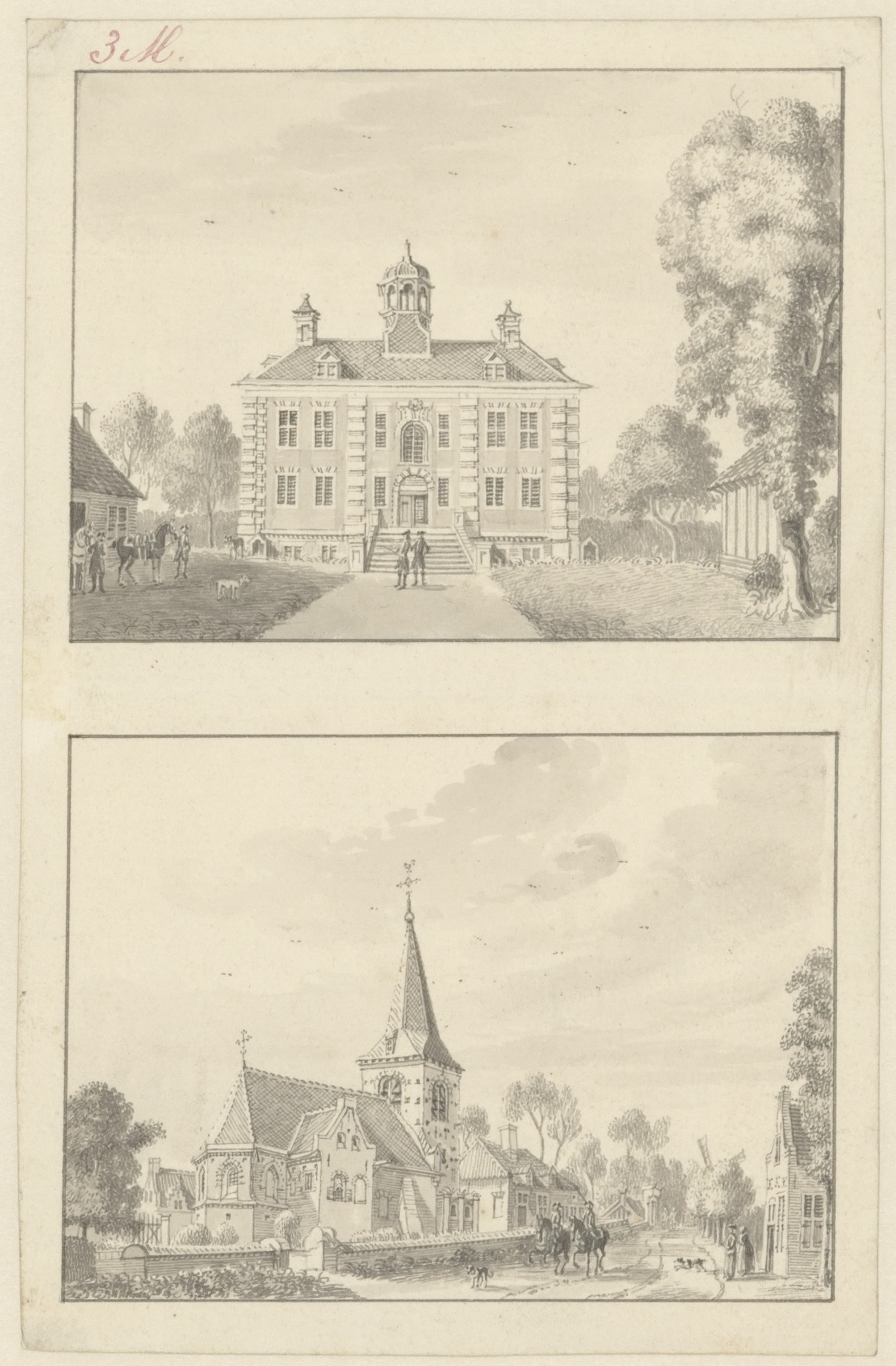 opschrift verso, met pen in grijs: J: de Beijer ad viv: delin: t' Dorp HoeveLaeken,/geleegen bij Amersfoort. 1744.: in handschrift van de kunstenaar