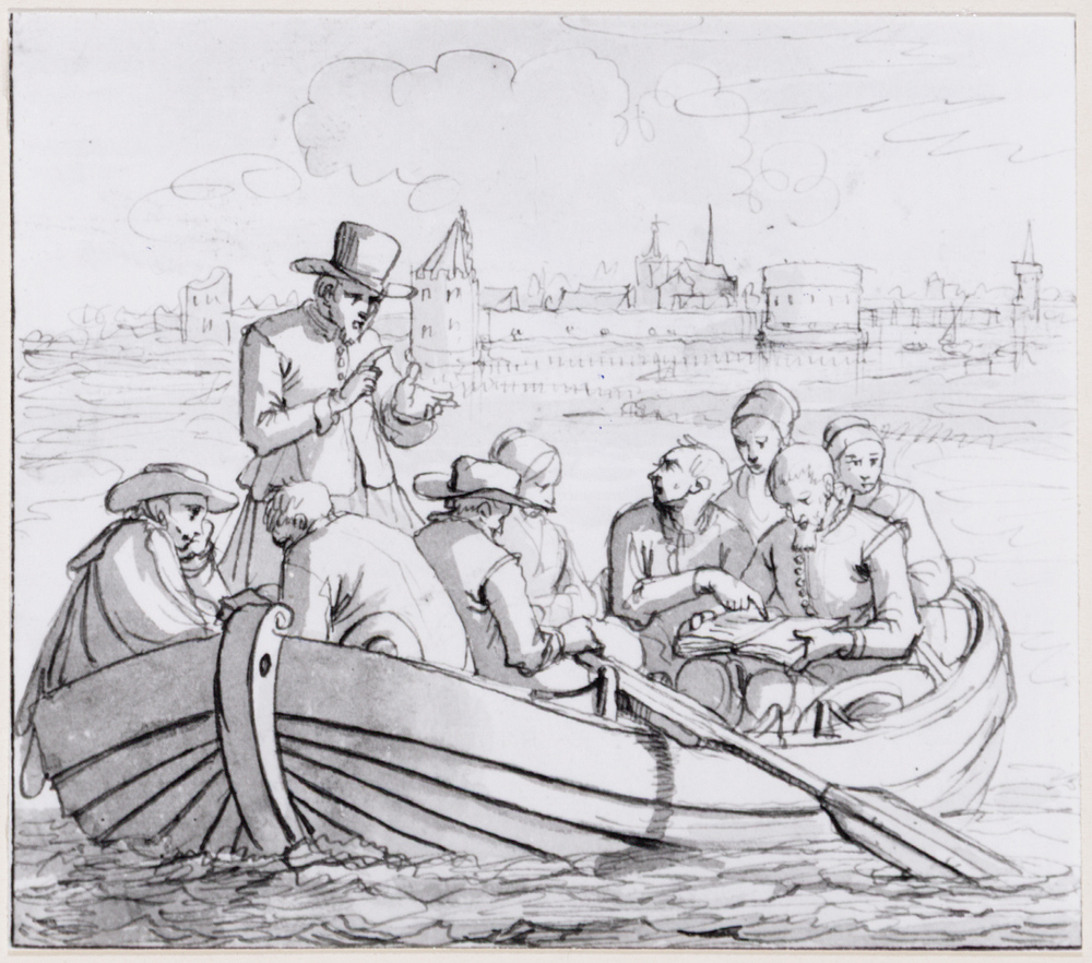 - Pieter Pietersz. Bekjen predikt in een roeischuit op de Amstel, 1693