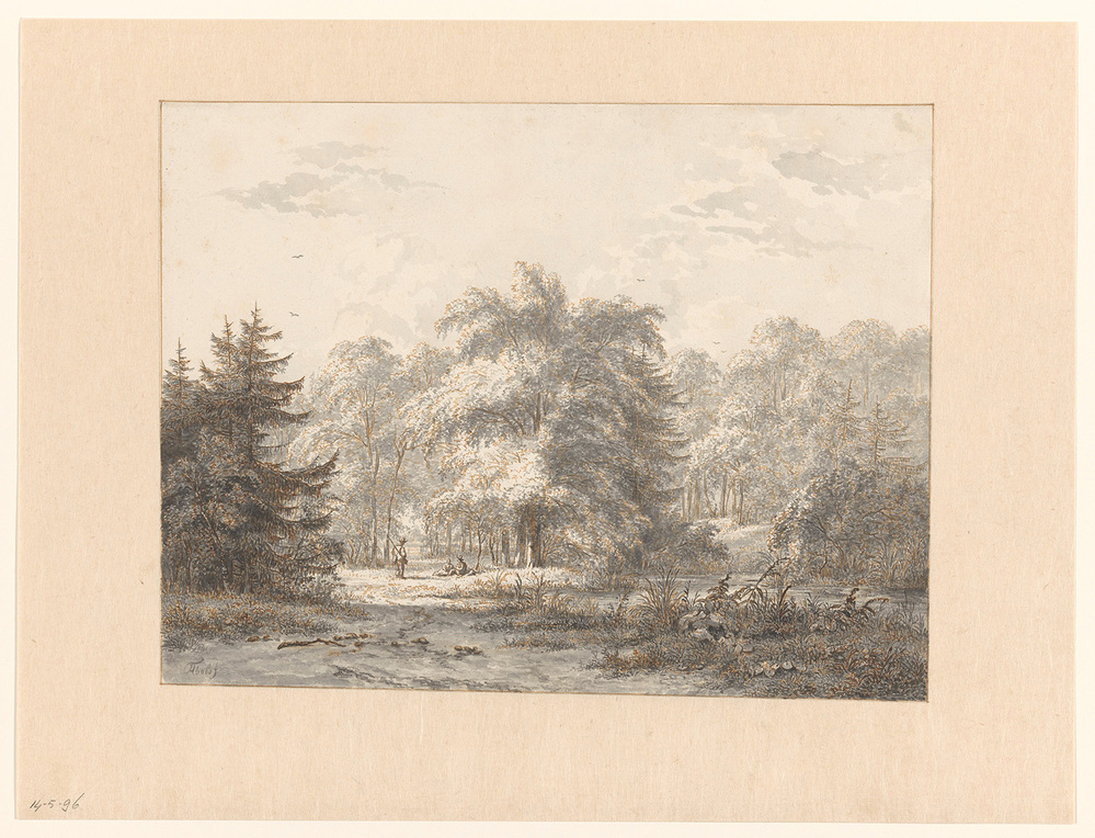 - Landschap met rustende figuren onder bomen bij een water, 1813 - 1866