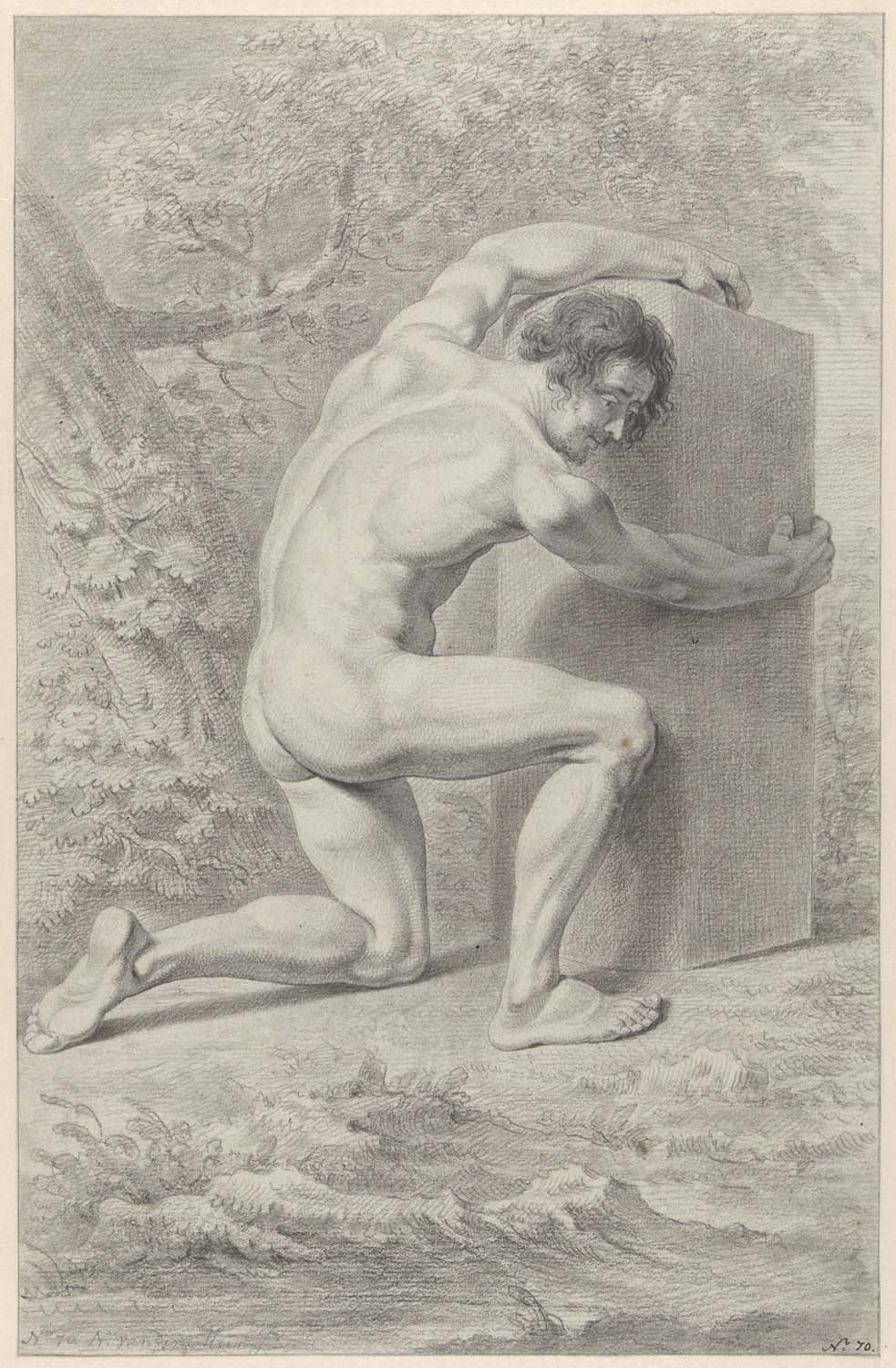 - Knielend mannelijk naakt, de armen om een blok geslagen, 1751 - 1822