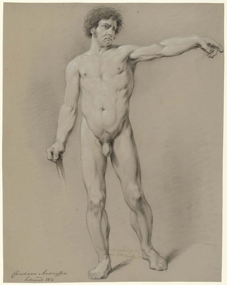 - Staand mannelijk naakt, van voren, de linkerarm gestrekt naar links, 1812