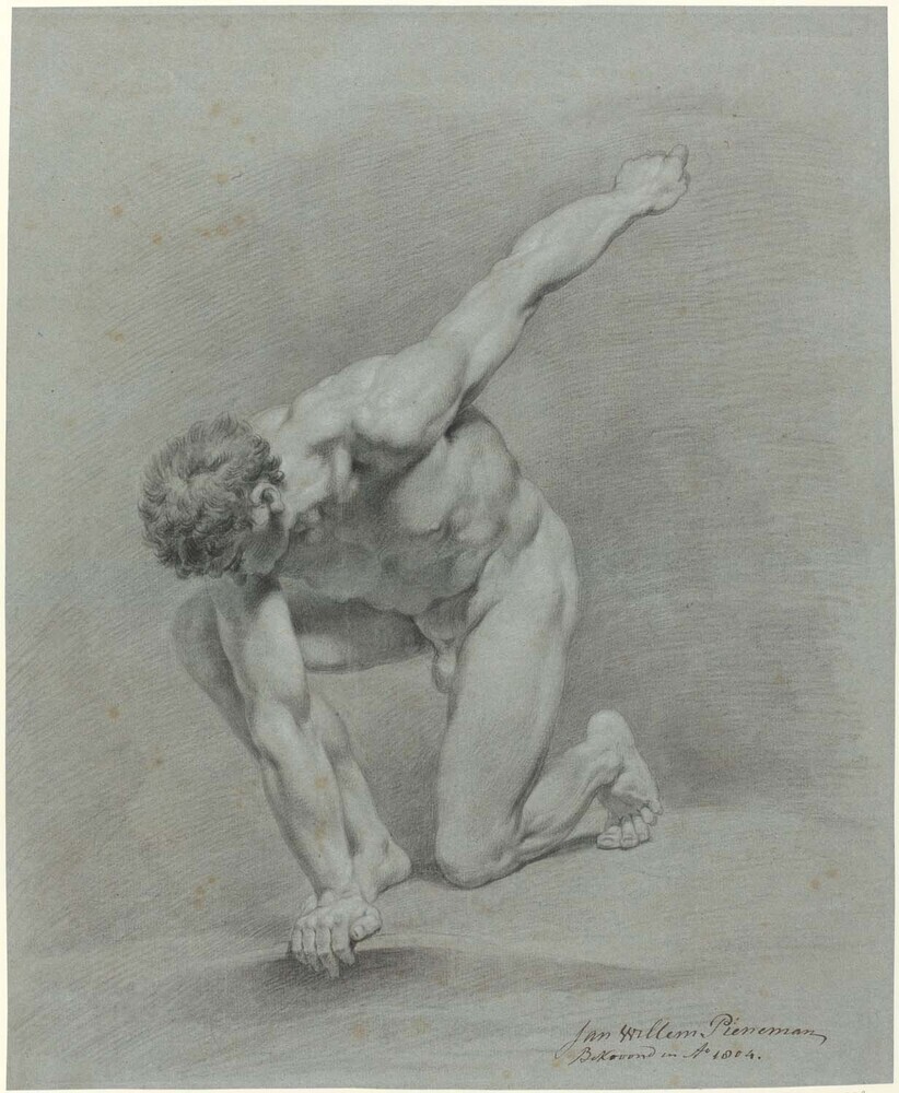 - Links voorover knielend mannelijk naakt, 1789 - 1853