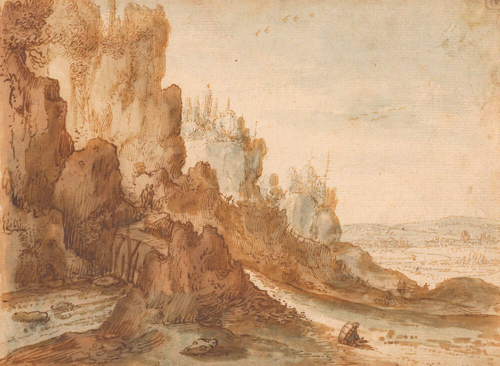 oude toeschrijving Joos de (II) Momper (1564 - 1635-02-05) - papier, pen