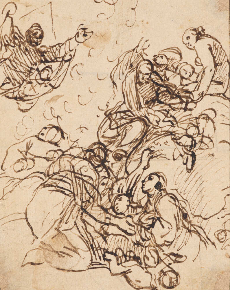 - Compositieschets voor bij een wonder betrokken figuren, 1550 - 1599