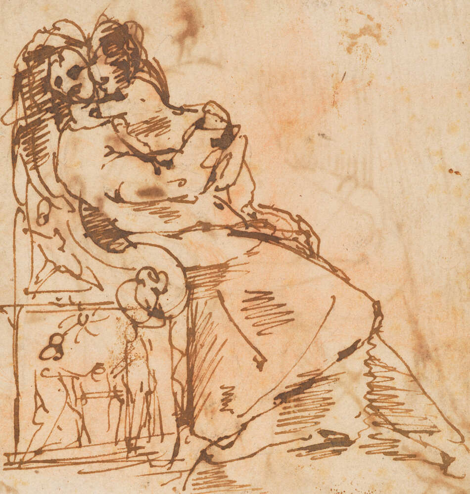 - Madonna met kind, troned, verso, een krijgsman, 1600 - 1699