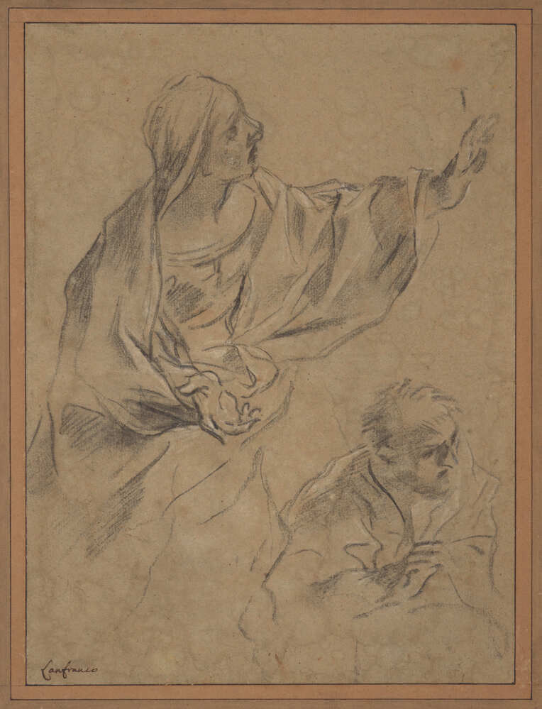 oude toeschrijving Giovanni Lanfranco (1582-01-26 - 1647-11-30) (tekenaar) - papier, houtskool