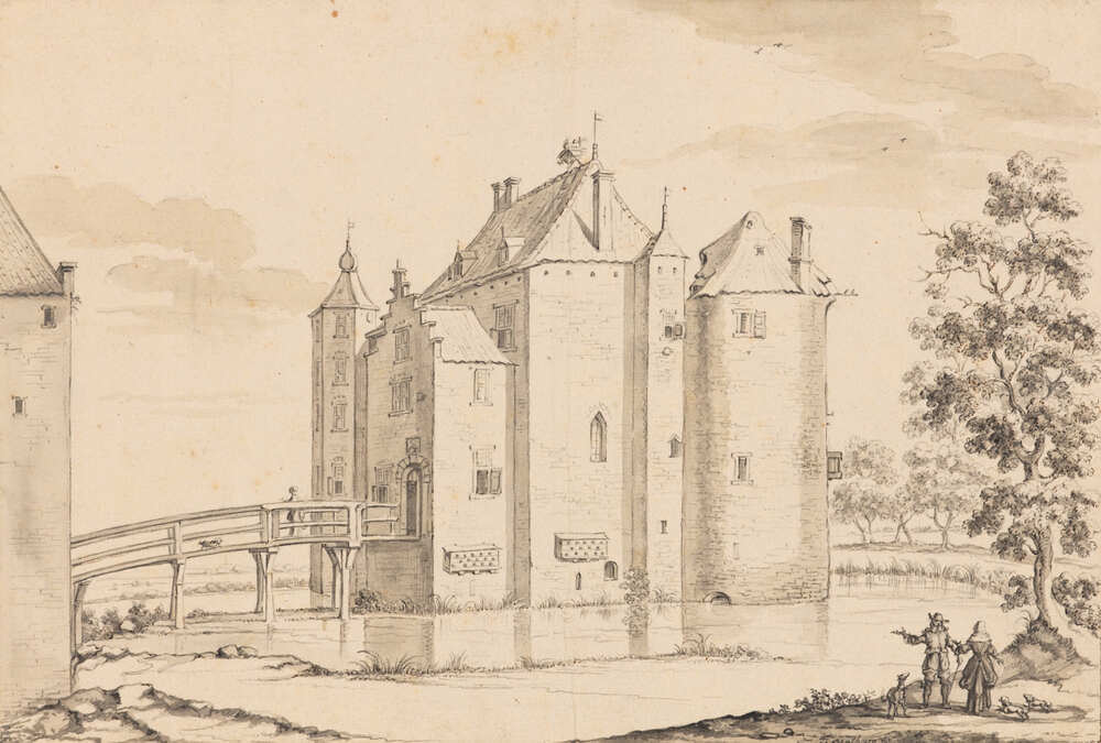 opschrift verso, op een oud opzetkarton: Het Huis te Gansoije bij de Heerlykheid Waalwijk A° 1652