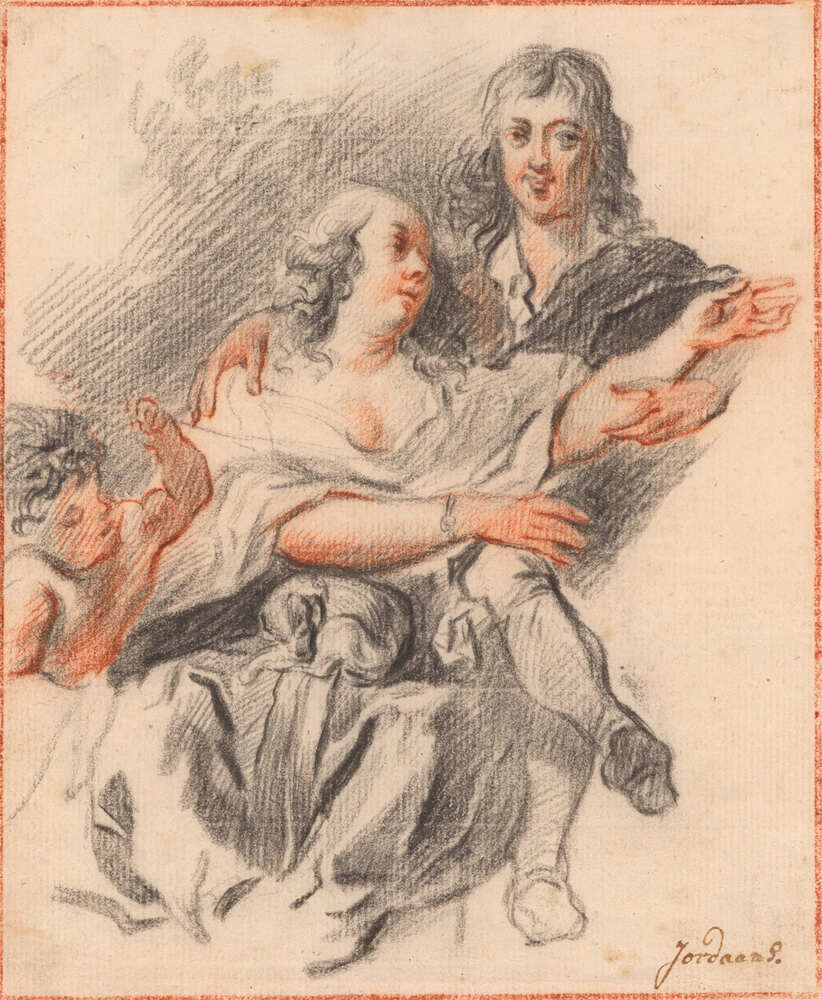 Coll. A.W.M. Mensing, veiling Amsterdam (Fr. Muller) 27-29 april 1937, in nr. 835: 'Jordaens et son école. Quatre dessins représentant: L´Adoration du veau d´or, deux cochons, tête de faune etc.' (Fl. 65,- aan Museum Fodor); Aankoop 1937, vermeld in het jaarverslag over dat jaar, p. 15 (als School van Jordaens)