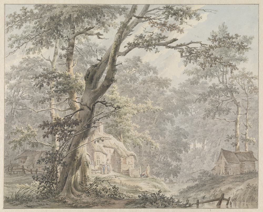 Voorgesteld is een boerderij aan een beekje in een boslandschap. De hoge boom op de voorgrond contrasteert met de sterk verlichte boerderij erachter, het geboomte daar achter is weer iets donkerder van toon. Dit afwisselen van donker en licht voor een sterke dieptewerking en de combinatie geboomte en bebouwing zijn karakteristiek voor het werk van Paulus van Liender tussen 1770-1790.