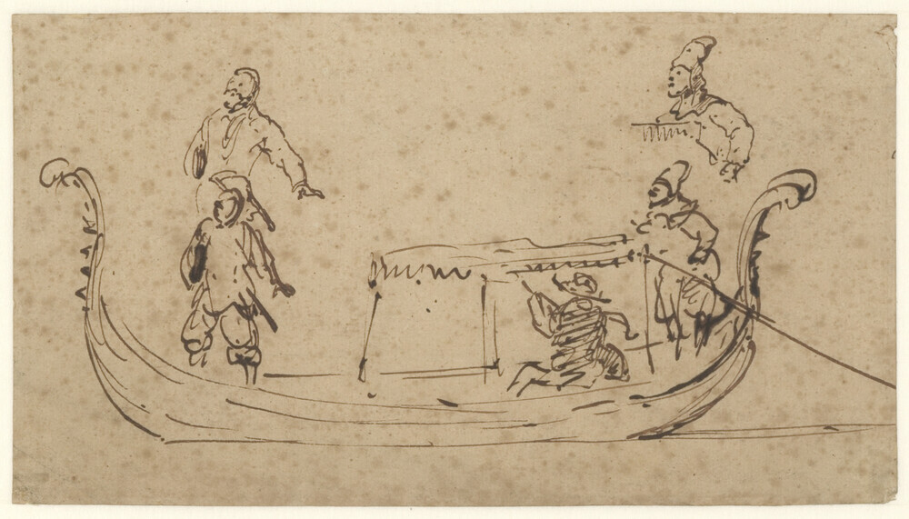 - Studie van een gondel met drie figuren, waarvan er twee ten dele zijn herhaald, 1746 - 1756