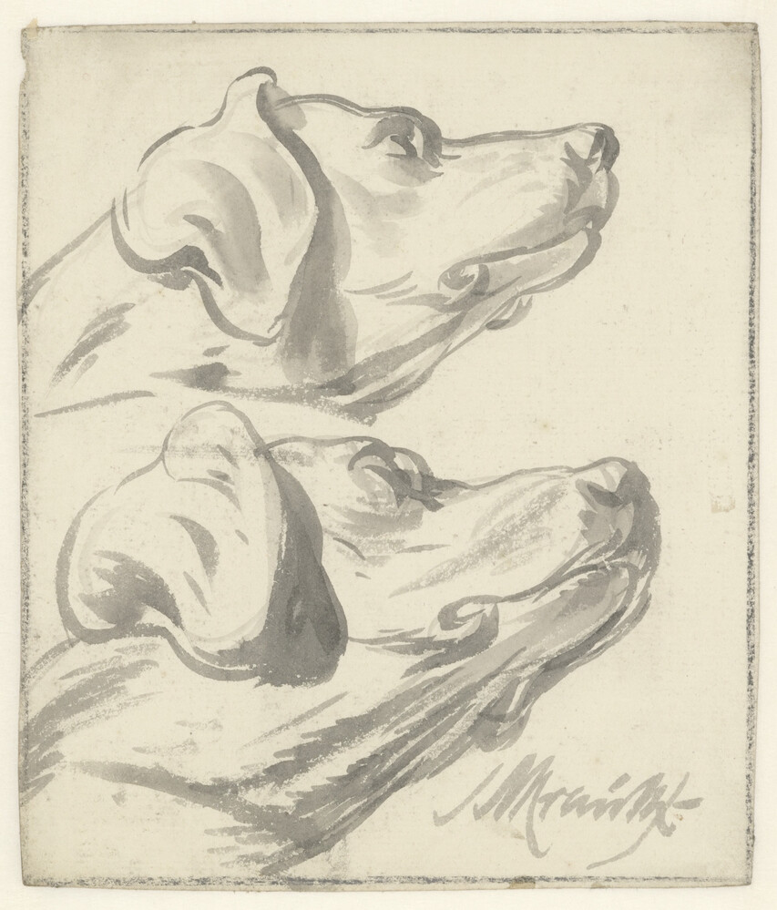 Deze typerende, zeer moderne, stijl is ook terug te zien in de twee tekeningen van een hondenkop. In de onderste tekening is de hond met hardere strepen weergegeven. De hond krijgt hierdoor een strengere uitstraling dan de hond die erboven afgebeeld is. Waarschijnlijk bestudeerde Krausz hier de uitwerking van verschillende aanzetten of het gebruik van verschillende penselen. De opvallend grote handtekening doet echter ook vermoeden dat dit werk voor de verkoop bestemd was. Misschien verkocht de tekenaar zijn studies, als dit waar is dan was moet er een zeer gunstige markt voor zijn werken geweest zijn.
