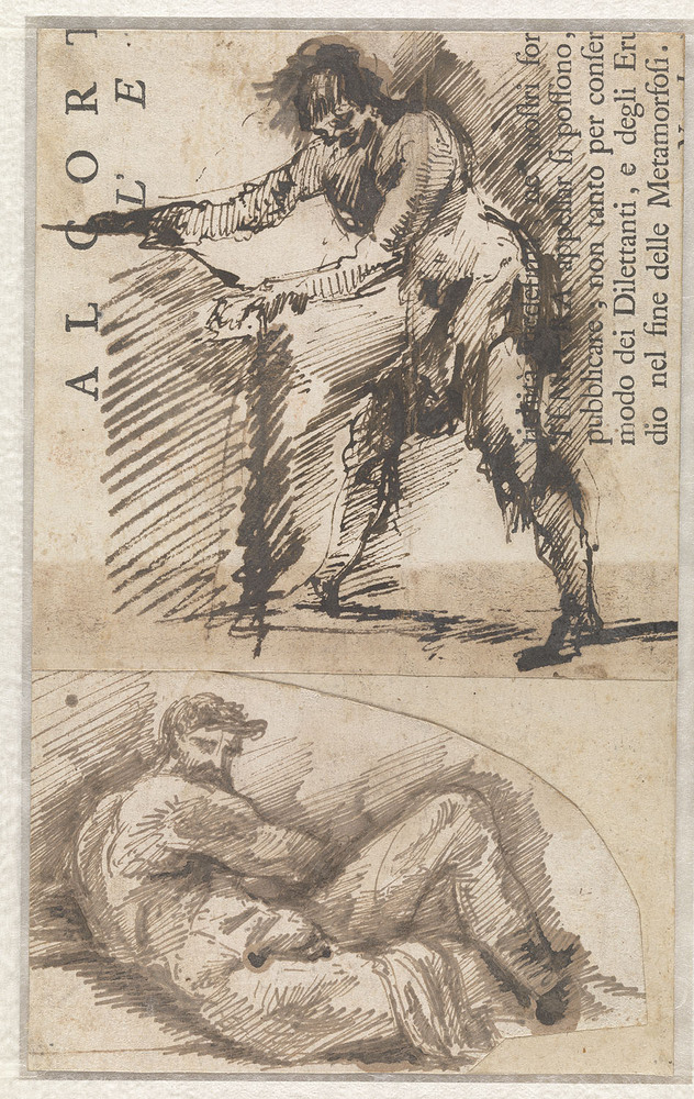 - Studie naar een staande mannenfiguur, die een basement opmeet (a). Studie naar il Giorno van Michelangelo (b), 1764 - 1778