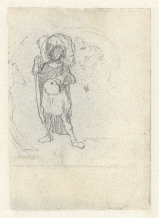 - Karikatuur van een man met hoed, waarop pluim, 1844 - 1903