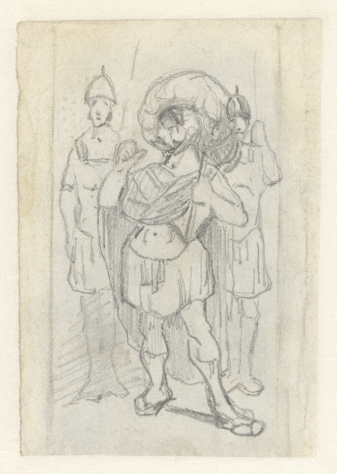 - Karikatuur van een ridder met twee edelknechten, 1844 - 1903