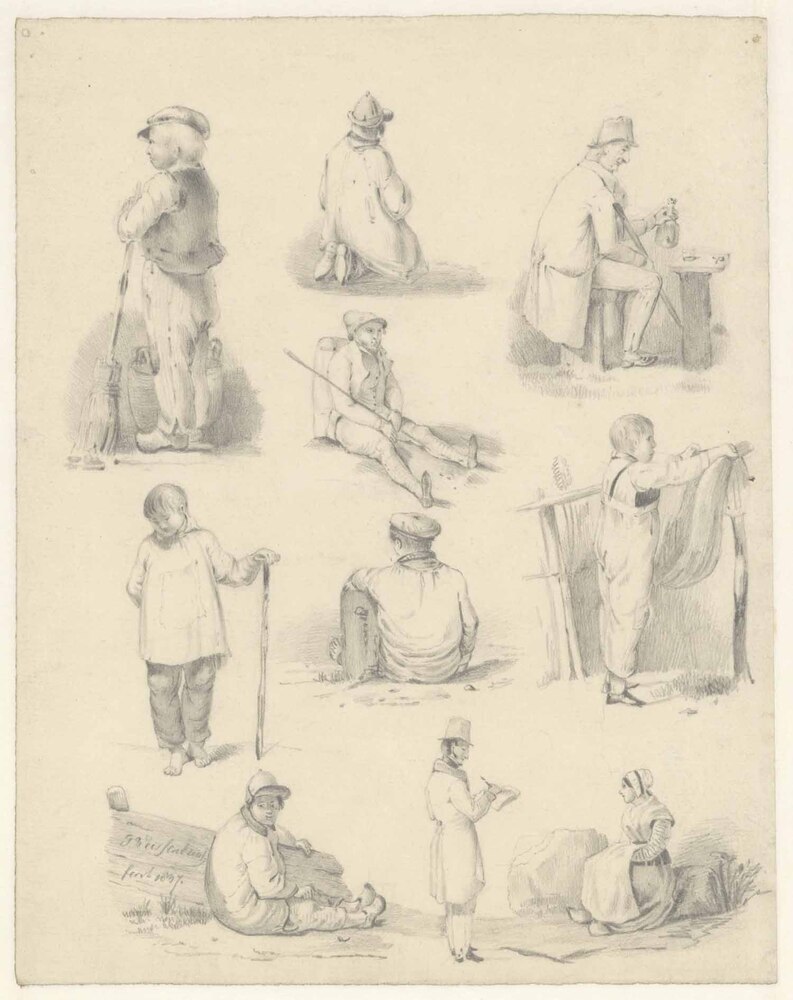 - Tien studies van boeren, herders en een tekenaar op een blad, 1837