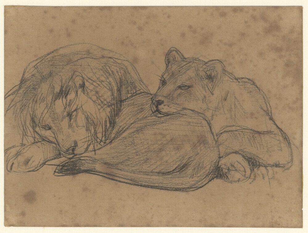 - Liggende leeuw en leeuwin andere titel: twee liggende leeuwtjes uit de serie: "natura artis magistra", 1858 - 1899
