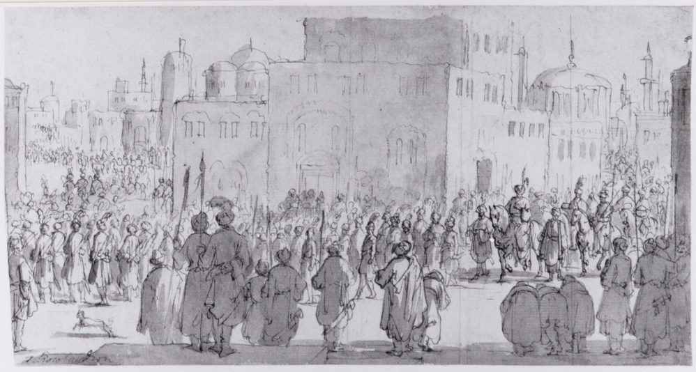 Voorstudie voor prent uit "Voyages de Mr. De Thevenot" [Dl. 1] (1689)- Herkomstparticuliere collectie Einar (1893-1976) Perman, Stockholm; vlg. Amsterdam (Mak van Waay), 09-06-1975, nr. 104