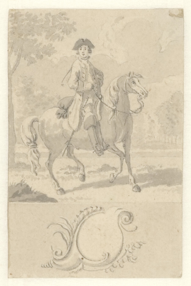 - Ontwerpen voor de zestig kaartjes van een loterijspel (Ruiter te paard), 1740 - 1760
