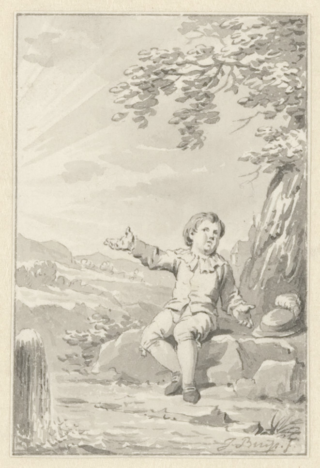 Veiling Cornelis van Stroo, Alkmaar, 29 juli 1811 e.v.d., Kunstboek P: 'Inhoudende 44 stuks Teekeningen, met den Titel; allen met de Pen en O.I. inkt door Jacobus Buys behorende tot de Kindergedichten van J. van Alphen' en 'Ook nog 24 stuks Teekeningen tot onderscheidene Werken behoorende, allen met O.I. inkt door zoo Evengemelde Meester [Jacobus Buys].';Aankoop 1985 (van E.H. Ariëns Kappers, Amsterdam, zogenaamd als afkomstig uit de collectie van Cornelis Schoon (1719-1778), Broek in Waterland, gehuwd met Neeltje Pater)