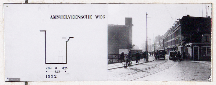 Foto en getekende doorsnede van situatie Amstelveense weg in 1932.