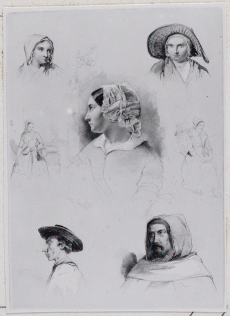 - papier, rood krijt, krijt, potlood, waterverf, verf, hoogsel
