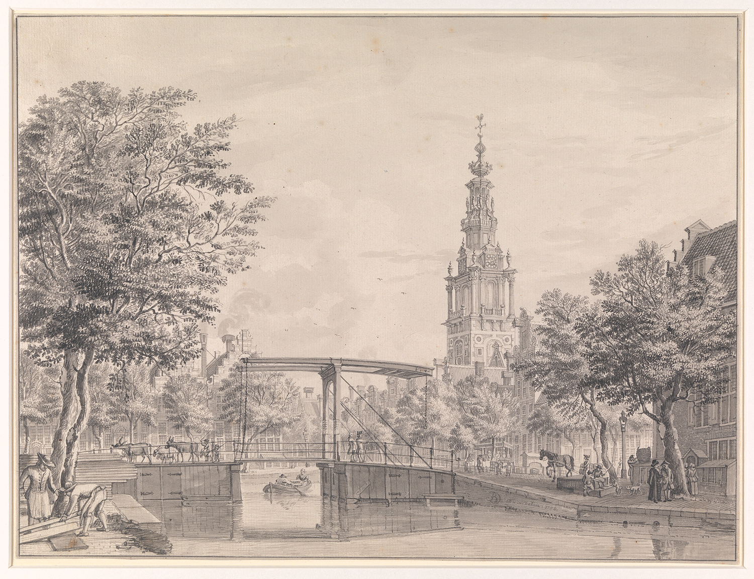 Zoals gebruikelijk in het omvangrijke oeuvre van Jan de Beijer bestaan er verscheidene versies van dit Amsterdamse stadsgezicht: een gekleurde tekening in het Amsterdamse Gemeentearchief en een schilderij in het AHM. De tekening en het schilderij in het AHM zijn beide 1758 gedateerd. De tekening in het Gemeentearchief is aan de achterzijde voorzien van het eigenhandige opschrift: J:De Beijer ad viv:delint 1757.et fecit. 1768. Aan de drie versies lag dus een thans onbekende schets ten grondslag, die De Beijer in 1757 ter plekke vervaardigde.