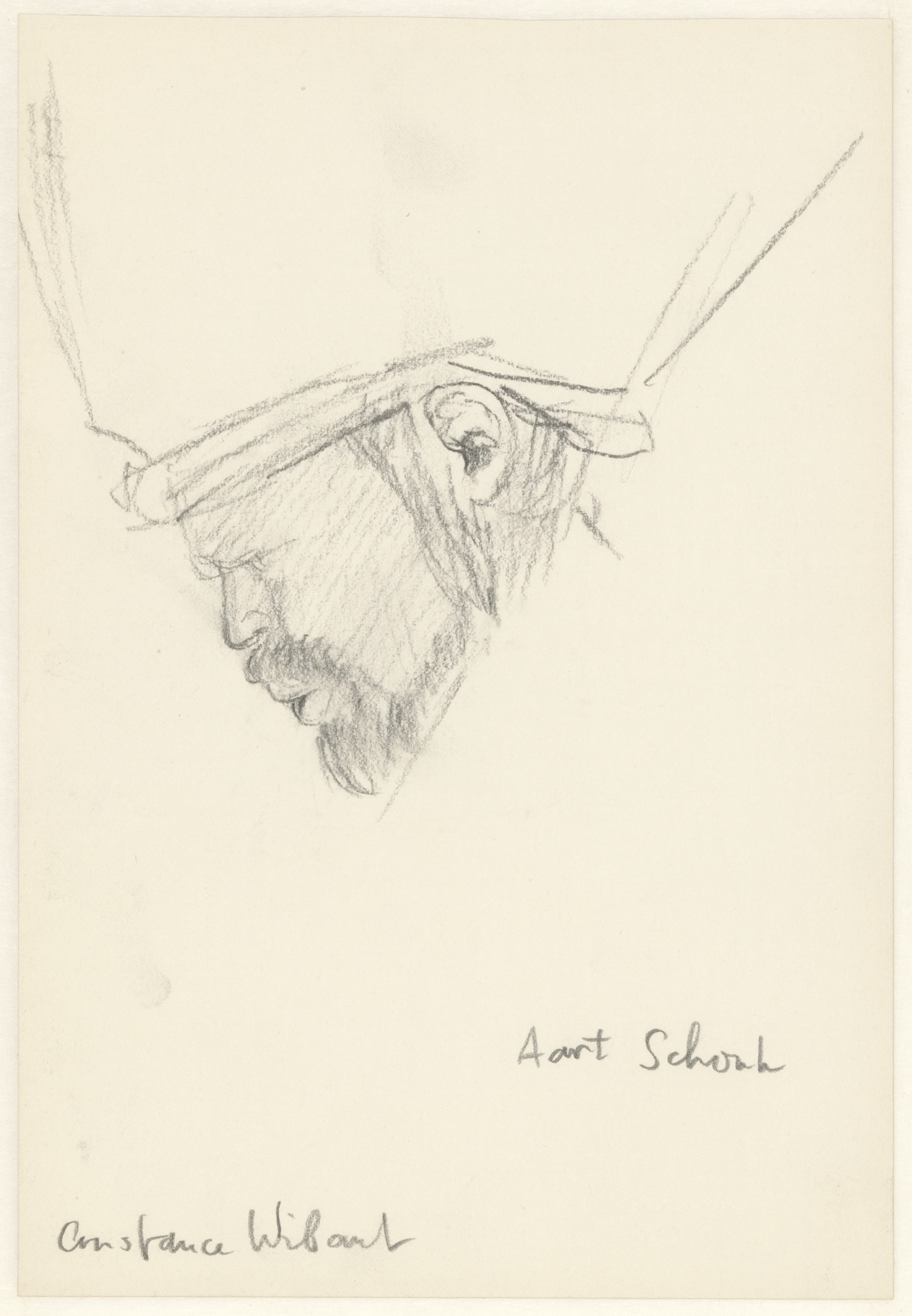 Schetsblad met kop van beeldhouwer Aart Schonk (BA 4156)- Trefwoorden